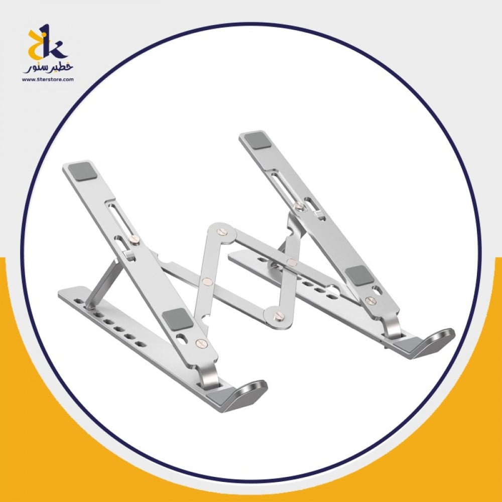 تم تصنيع هذا الحامل بالكامل من المعدن بلون فضي أنيق، مما يمنحه متانة عالية وقدرة على تحمل جميع أنواع وأحجام أجهزة الكمبيوتر المحمولة.